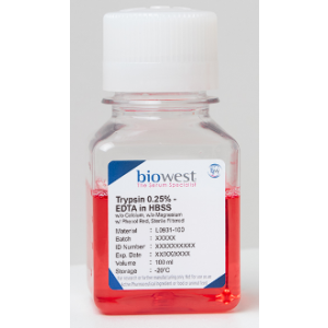 L0391-100, Trypsin 0.25% - EDTA in HBSS w/o Calcium w/o Magnesium w/ Phenol Red - 100ml